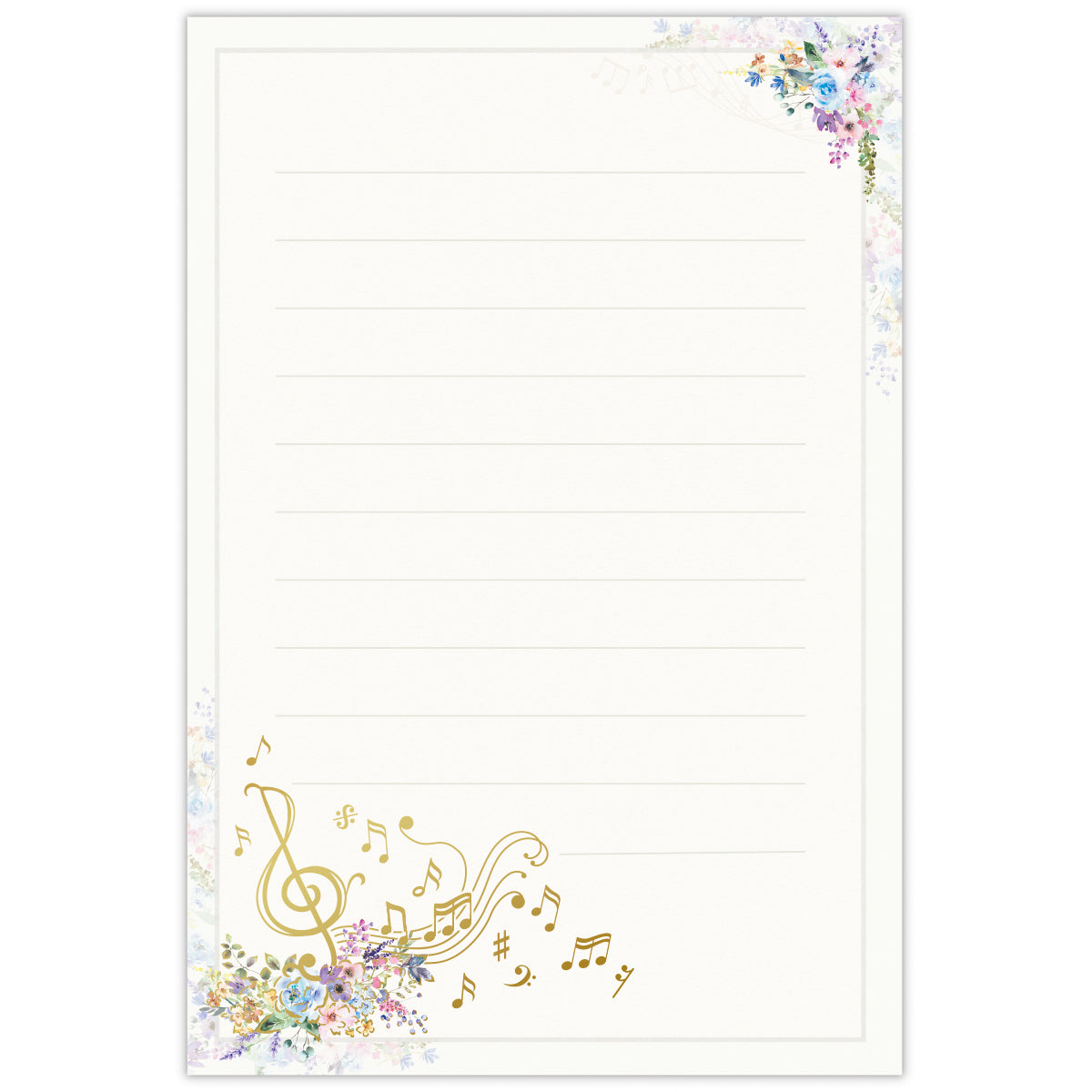秋から冬にかけて使いやすい落ち着いたトーンのレターコレクション「コンフォート&ピース」。人気の花×音楽柄を、落ち着いたグレイッシュトーンで新鮮な見た目に。特定の楽器ではなく五線譜と音符のモチーフを描くことで、幅広い音楽好きの方に楽しんでいただけるようにしました。マットタイプの金箔加工がシックで繊細な印象を与えます。