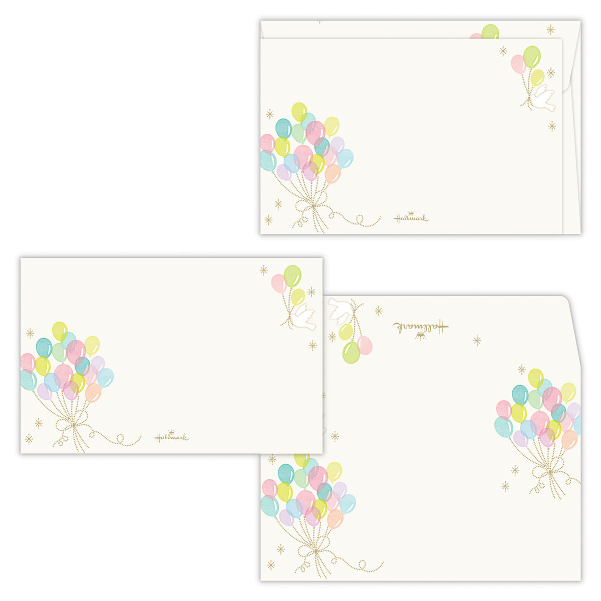 短い言葉のメッセージでも丁寧に伝えられるミニメッセージカードセット。封筒付きなのできちんと感もプラスできます。カラフルな風船と白い鳥が描かれた軽やかなデザインです。