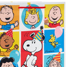 ピーナッツ・ギャングがカラフルに描かれたタグ付きのギフトバッグ。ひもの持ち手も含め、すべての部分がリサイクル可能です。